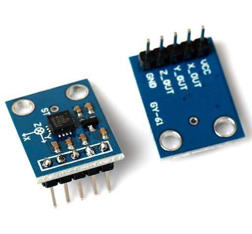 It is 3 axis accelerometer with on board voltage regulator IC and signal conditioned Analog voltage output. The module is made us of ADXL335 from Analog Devices. The product measures acceleration with a minimum full-scale range of ±3 g. It can measure the static acceleration of gravity in tilt-sensing applications, as well as dynamic acceleration resulting from motion, shock, or vibration.
